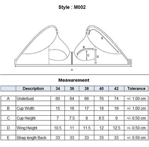 42B = Panjang Bra ± 80-82 cm,Lingkar Tengah 84-90 cm